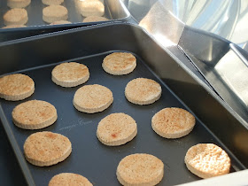 Enrollamos la masa y vamos cortando el rollo como a rodajas de aprox. 1 dedo de ancho. Vamos colocando sobre una bandeja de horno, donde previamente hemos puesto papel de hornear, separadas unas de otras.